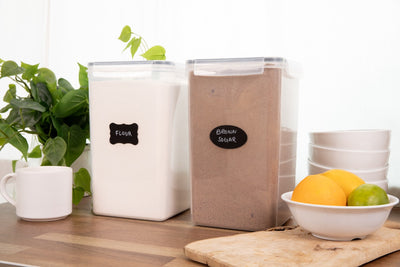 In stock[Superior Flour and Sugar Containers] - 2 BPA-free food storage canisters (7.3 x 6 x 11.2 inches) with free measuring cups, chalkboard pen & 8...