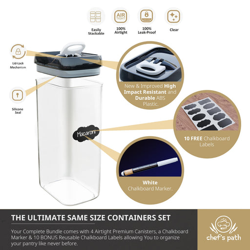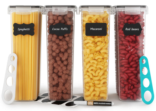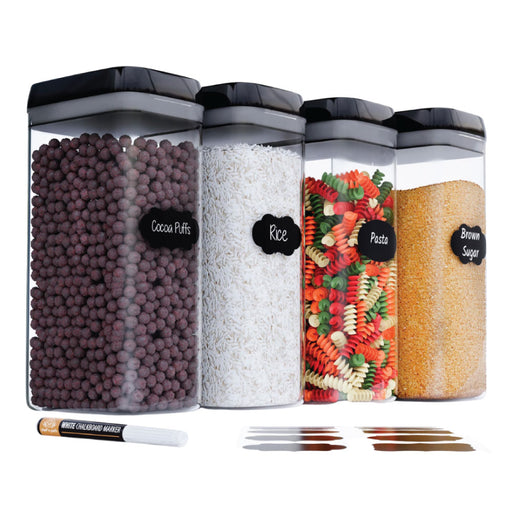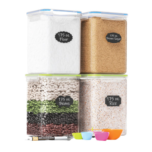 In stockSpecial Bundle - 4 BPA-Free premium food storage containers with lids, free measuring cups, and chalkboard pen to help you organize your pantry li...