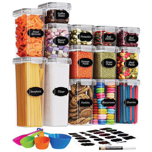 Out of stock✮ All you need to tidy up: With 24 BPA-free food storage canisters in four sizes from 11.83 cups/2.8l to 3.38 cups/0.8l, a chalkboard marker and ...